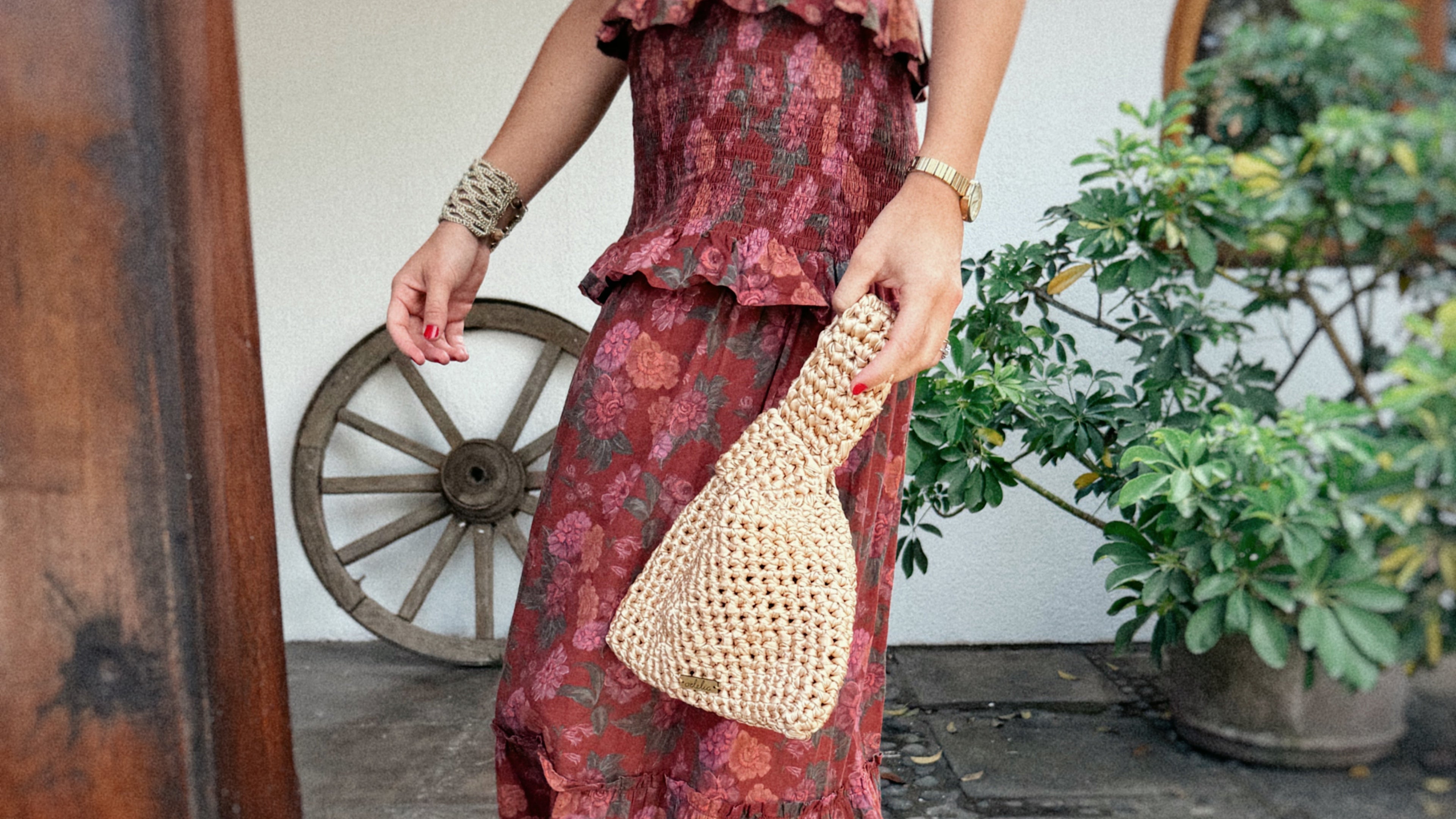 Los bolsos y joyas de Odelia son creados a mano, disfrutando del proceso de explorar mezclando materiales y creando piezas únicas.